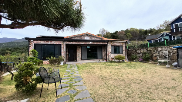 야외에는 디딤석이 깔린 산책로와 푸른 잔디 마당이 단정하게 가꾸어져 있어 전원생활의 로망을 온전히 누릴 수 있습니다. 마당 한편에는 텃밭을 가꿀 수 있는 공간이 충분히 마련되어 있으며 마당에서 바라보는 웅장한 산세와 자연경관이 매우 아름답습니다.